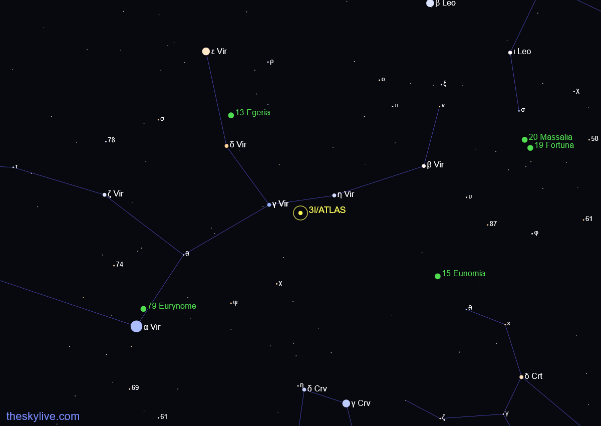 Poloha 3I/ATLAS dne 22. listopadu 2025.