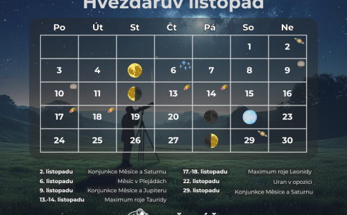Těšit se totiž můžeme na jeden z nejaktivnějších meteorických rojů – Leonidy, které zdánlivě vychází ze hřívy Lva. Aby toho ovšem nebylo málo, připadají nám na listopad i Tauridy, Andromedidy a Alfa Monocerotidy. Kdo tedy nechce čekat se splněnými přáními až na Vánoce, může usilovně vyhlížet už teď.
