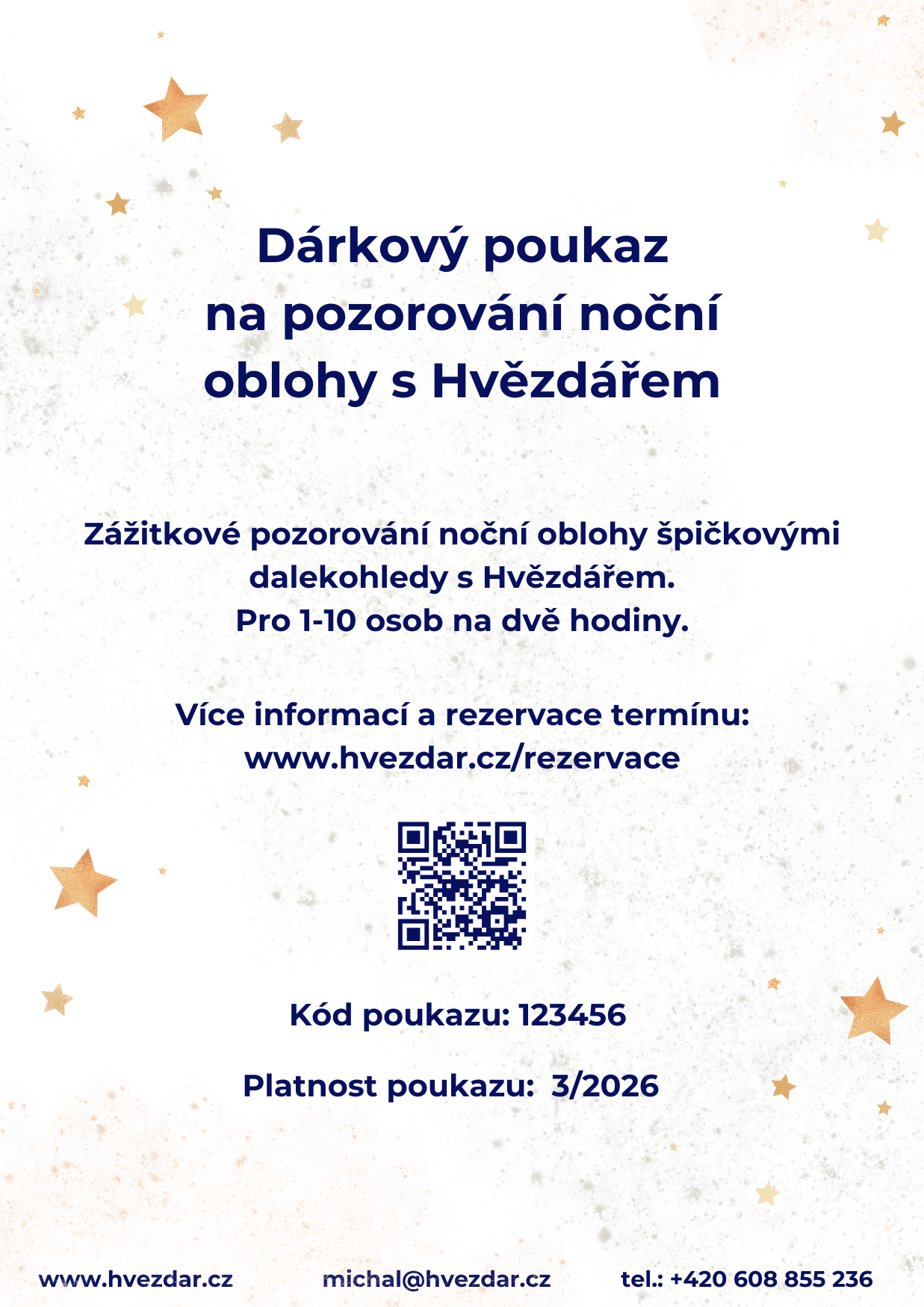 Dárková poukázka k pozorování. V nabídce si vyberte, zda si přejete digitální verzi k domácímu tisku nebo zaslat moji vytisknutou variantu.