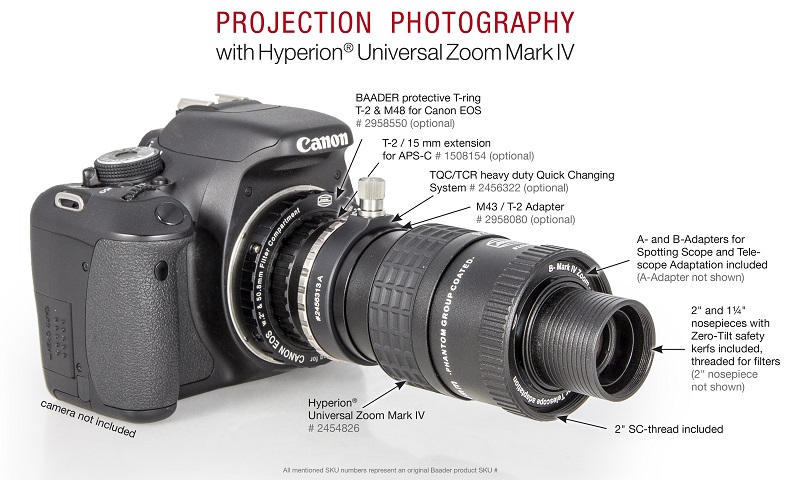 Jde zakoupit výhodně v setu s 2,25x Barlow čočkou, díky které dosáhneš ještě většího přiblížení s ohnisky 3,6-10,7 mm.
