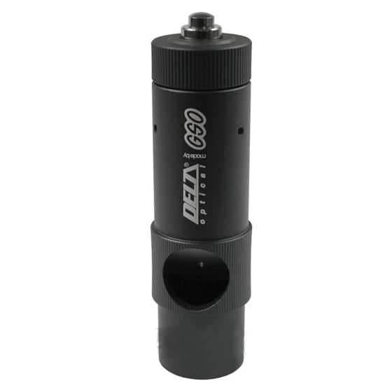 Laserový kolimátor pro kolimaci zrcadlových Newtonů a sekundárních zrcadel SCT dalekohledů. Kolimátor vložíš do okulárového výtahu, zajistíš a zapneš laserový paprsek (bacha na oči). Následně nastavíš polohu sekundárního zrcátka, aby paprsek směřoval do středu primárního zrcadla. Polohovacími šrouby pak nastavíš primární zrcadlo tak, aby laserový paprsek směřoval zpět do středu kolimátoru.